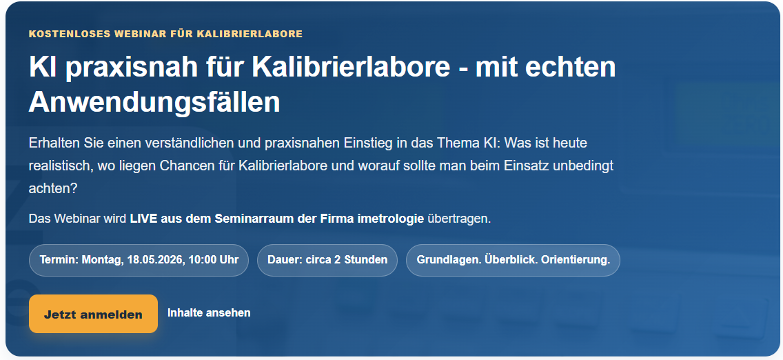 Zusammen mit 1A Cal und Firma Imetrologie veranstalten wir auch dieses Jahr wieder die Metrologietage 2022 (18.+19. Oktober). Agenda folgt.
